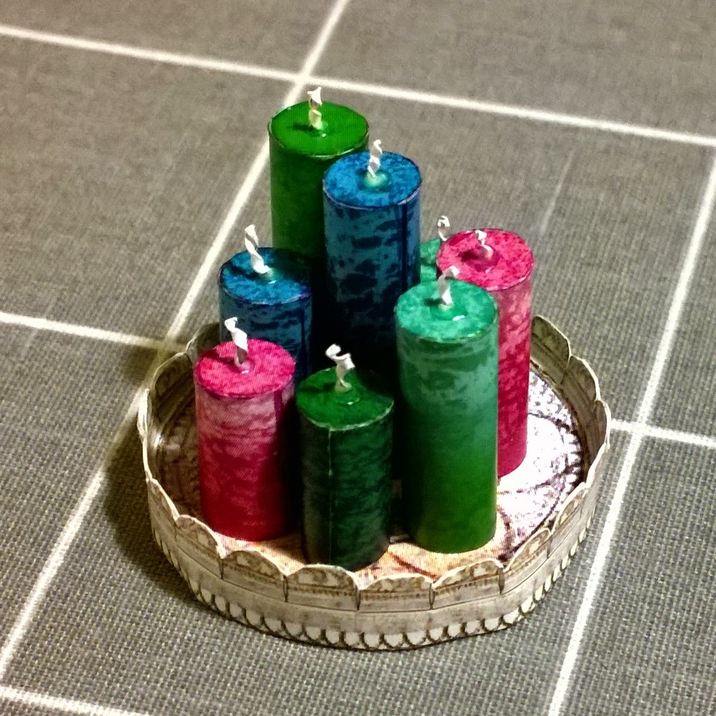 Marianne oli askarrellut minulle tällaisen ihanan kynttiläasetelman. Teille, jotka ette ole Minihalin tuotteisiin tutustuneet, niin tämä setti on todellakin paperista tehty! Eikö näytäkin aidolta - ja koska kynttilät eivät ole kiinni, ties minne niitä vielä sijoittelenkaan. Kiitos Marianne!